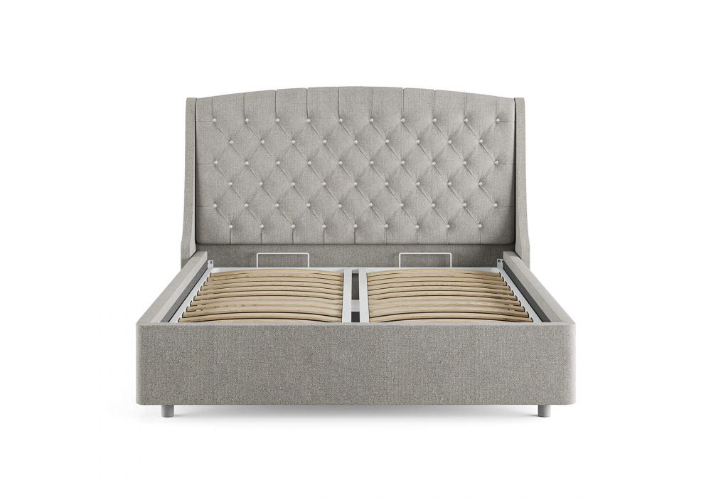Стильная и комфортная интерьерная кровать. Кровать выглядит гармонично как в классическом интерьере, так и в современном, что открывает простор для смелых дизайнерских решений. При необходимости кровать может быть укомплектована разборным или неразборным металлическим основанием с ламелями, подъемным механизмом с бельевым ящиком, трансформируемым основанием Aquarius.