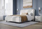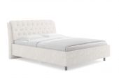 Элегантная интерьерная кровать с изголовьем, украшенным декоративными пуговицами и глубокой пиковкой. Модель изготовлена из ДСП. При необходимости кровать может быть укомплектована разборным или неразборным металлическим основанием с ламелями, подъемным механизмом с бельевым ящиком, трансформируемым основанием Aquarius.